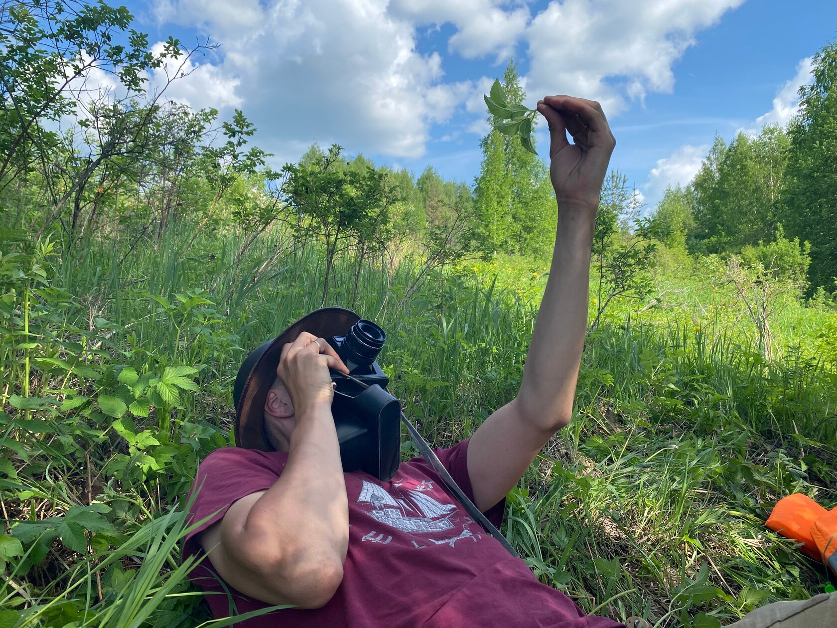 10:50 Пришли в д. Кобели, осмотрели заброшенные дома, изучили артефакты в виде корзин из дранки (бурачки), горшка с трещиной и прочей утвари, которая теперь уж никому не нужна. Видели на себе клещей, вовремя депортировали их с тел и одежды. Впечатления двойственные: и любопытство исследования, и грусть лицезрения оставленной деревни.