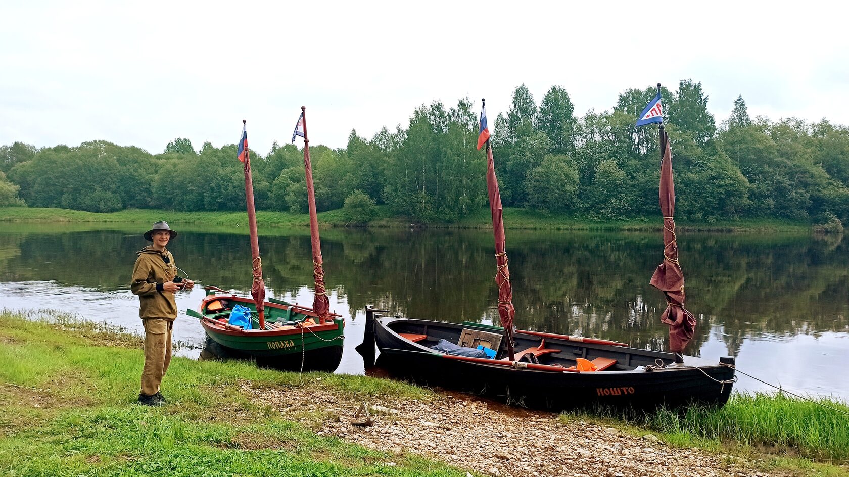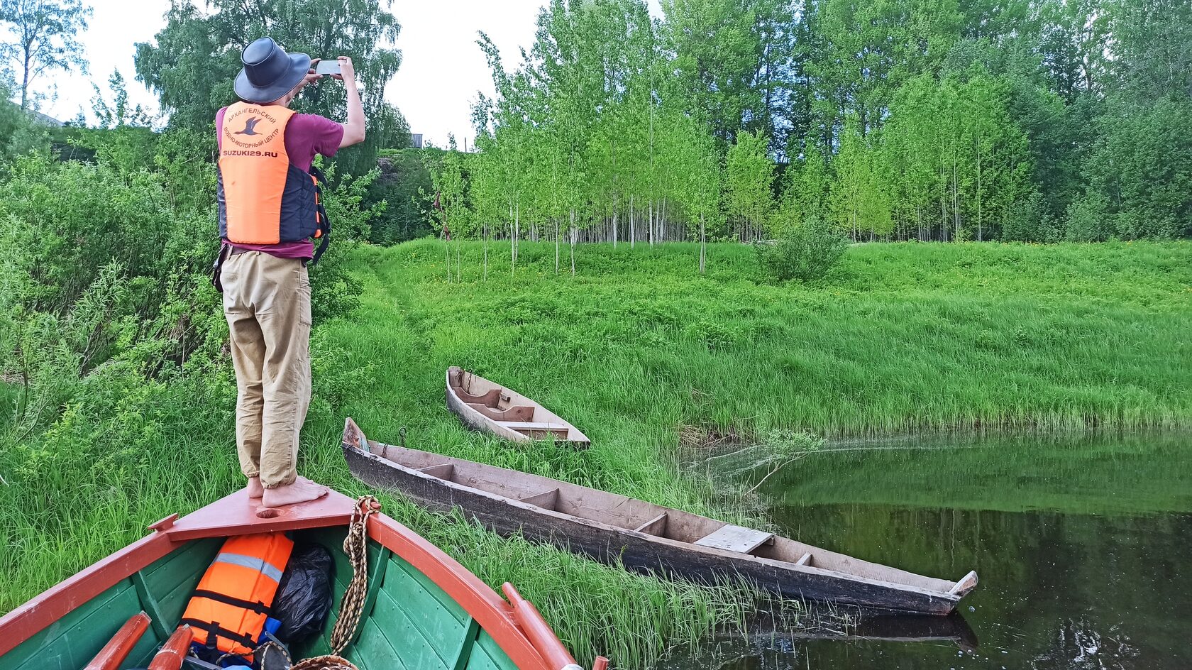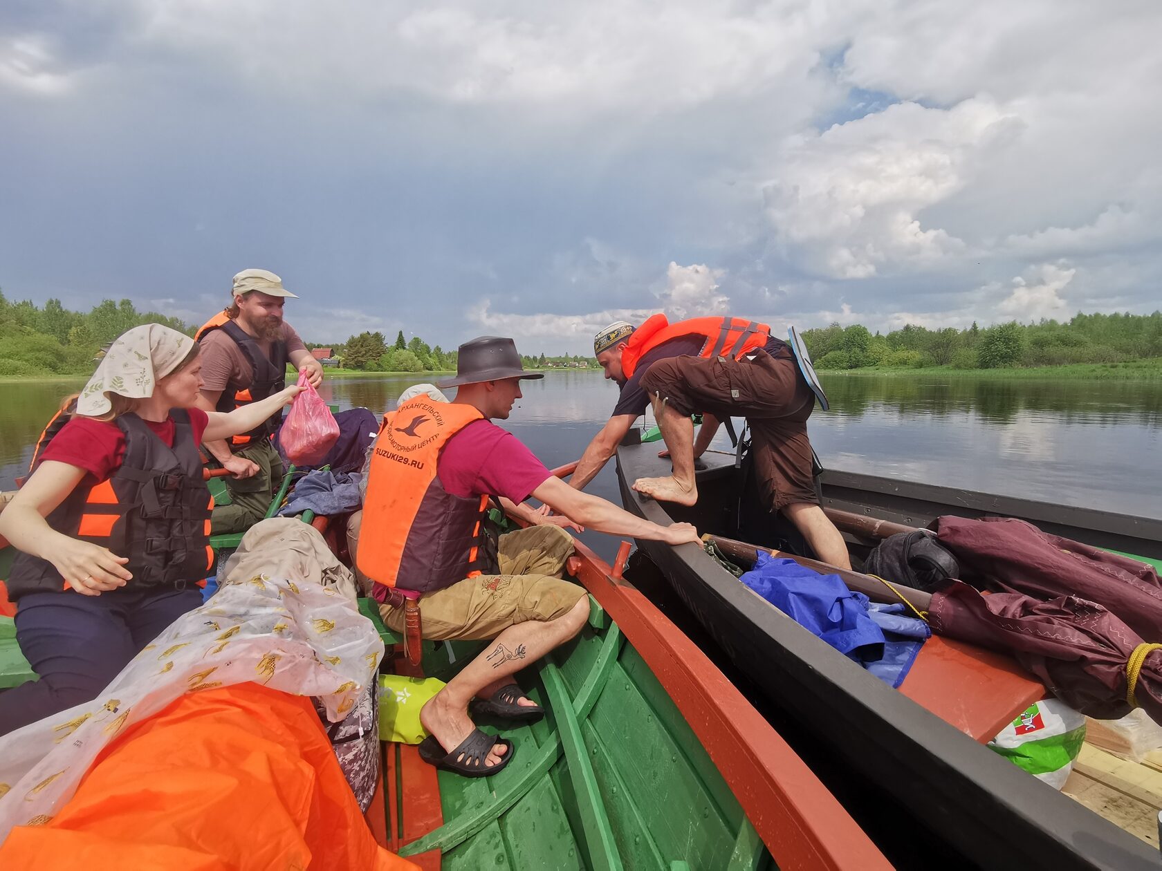 11:40 Вышли на двух карбасах из Каргополя («Попажа»: Миша, Саша, Мэри, Катя, Таня; «Пошто»: Егор, Лена, Илюша, Андрей, Григорий).