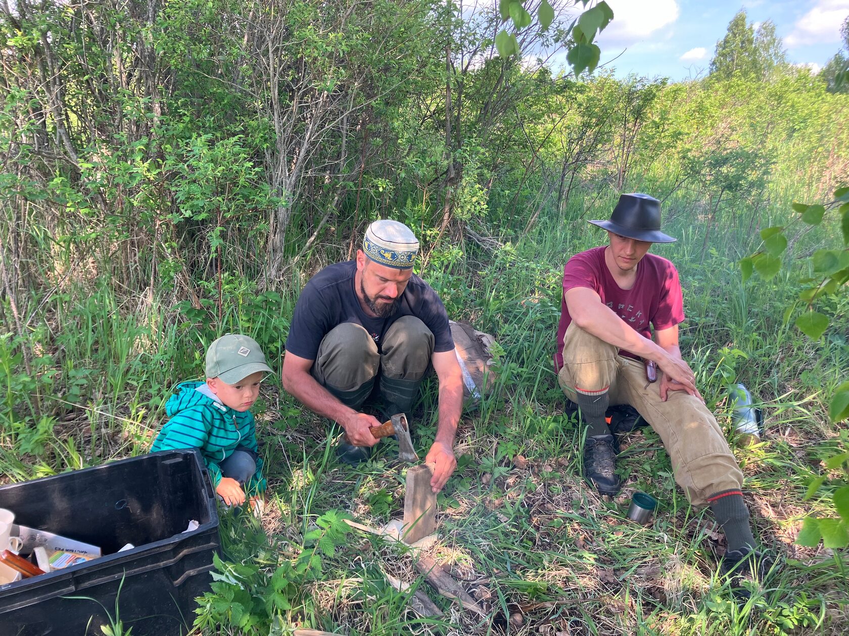 7:25 Выезжаем на машинах из Архангело в Усачёво. Там завтрак на костре вместе с викингами: каша, кофе, чай.