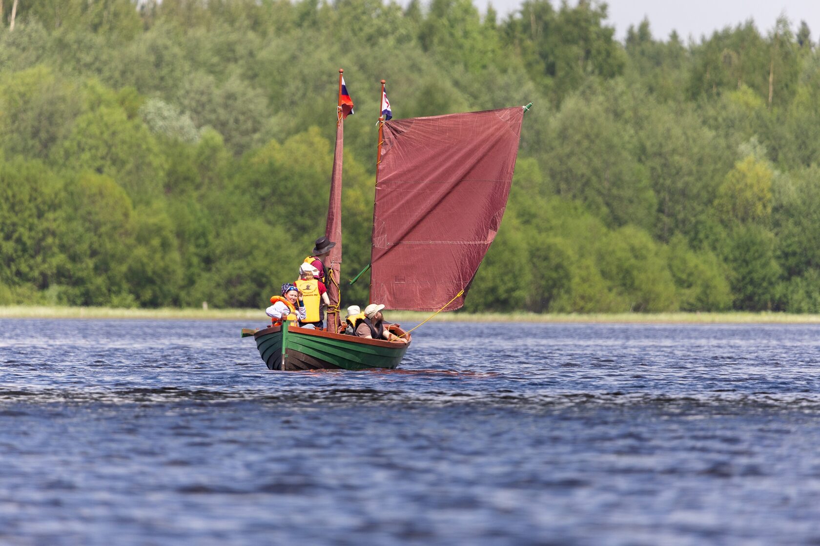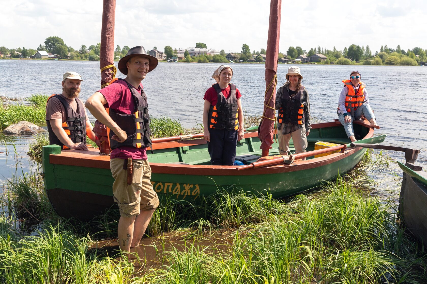 На лодке впереди нас идёт Павел Долгих с командой, который, по стечению обстоятельств, в то же время решил пройти на своей самодельной лодке «Поветерь» всю Онегу до выхода в море.