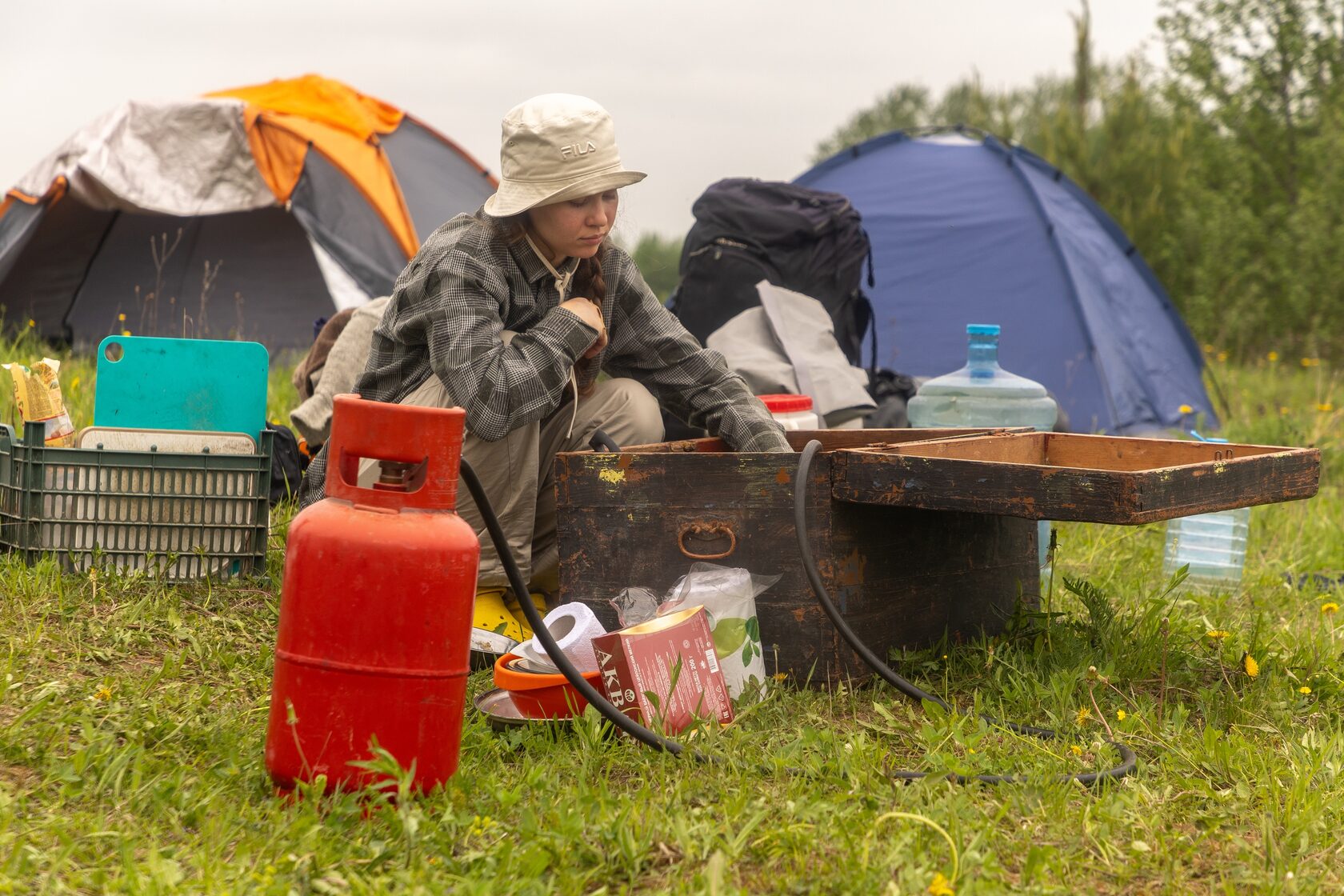 14:30 Пришвартовались пообедать. Примяли траву, подготовили площадку для привала. Сварили рис с тушёнкой и овощными консервами, свежей капустой, кофе, чай, курабье. Остатки сладки!