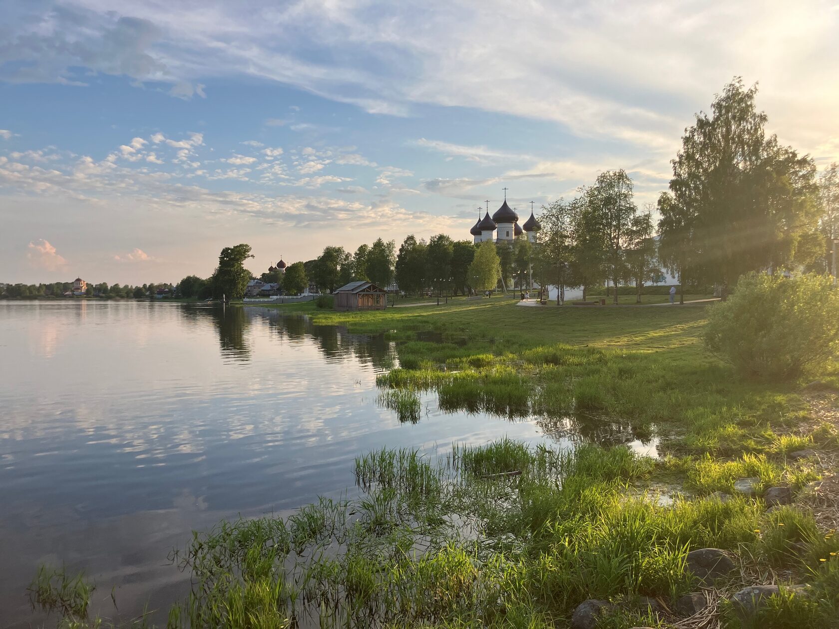 13:35 Катя, Мэри, Лена искупались в Онеге. Полный восторг, вода теплая, течение быстрое.