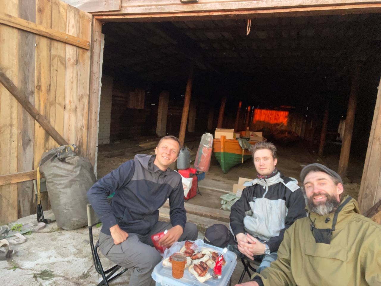 19:00 приехали Егор и Ваня Мишин. Егор еще позавчера вел поход на Кенозере, а Ваня предыдущие 10 дней жил в деревне своих дедов, Березнике. Их обоих забрал Игорь с Мишаней на «шишиге» — Газ 66.