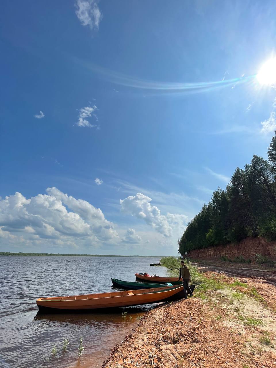 23:00 доехали с лодкой до реки Мезень. Она сейчас необычайно полноводна из-за долгих дождей. спустили на воду «Койду», накрыли тентом и оставили на ночь на берегу.