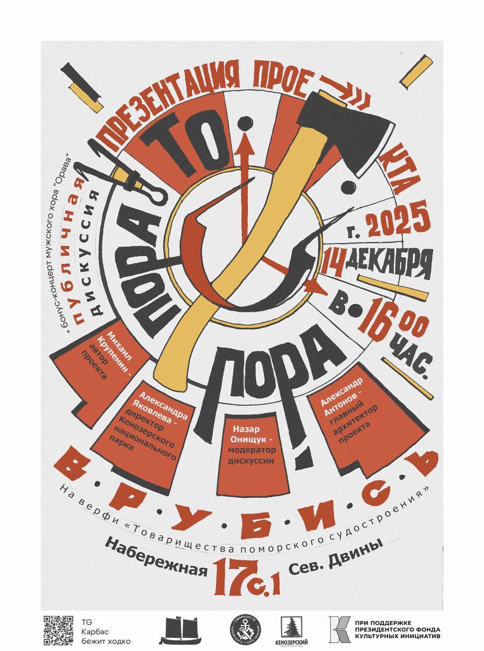 14 декабря в 16:00 на верфи Товарищества поморского судостроения состоится презентация проекта «Пора топора» в формате публичной дискуссии и свободного диалога.
